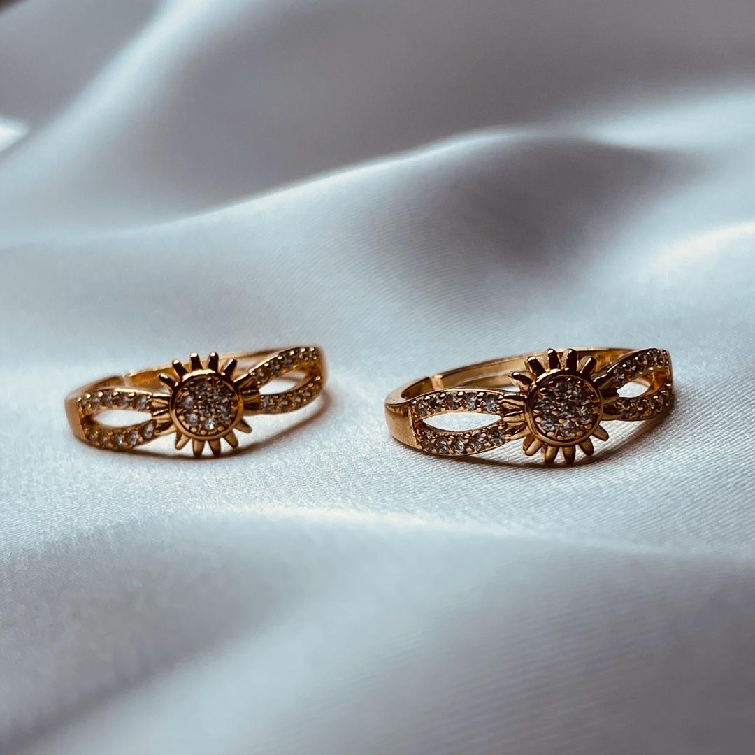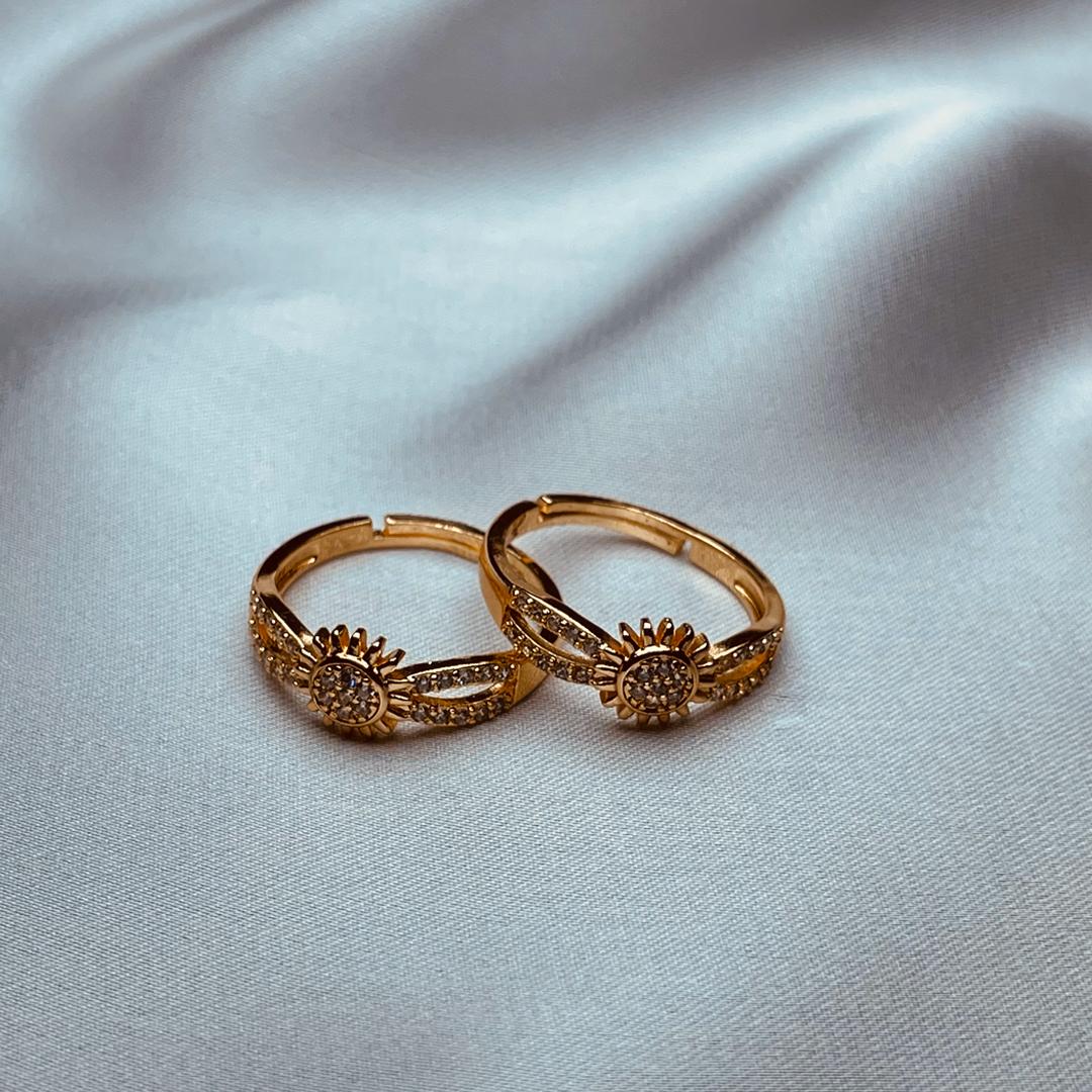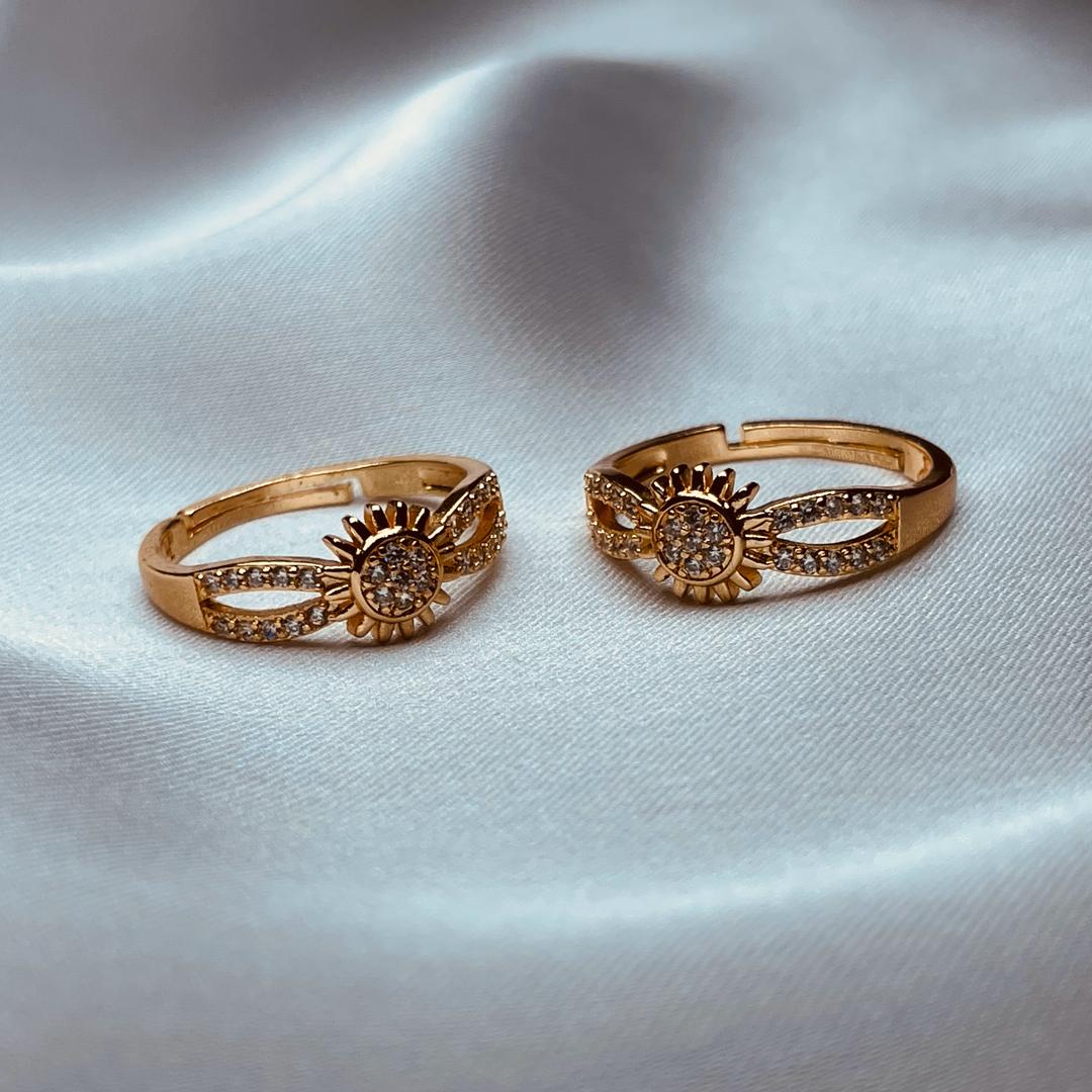 Add a touch of elegance to your jewelry collection with this gold adjustable sunburst ring, featuring a dazzling crystal-studded centerpiece. The unique sunburst-inspired design with an infinity-style band exudes sophistication, making it a perfect accessory for both casual and formal occasions.