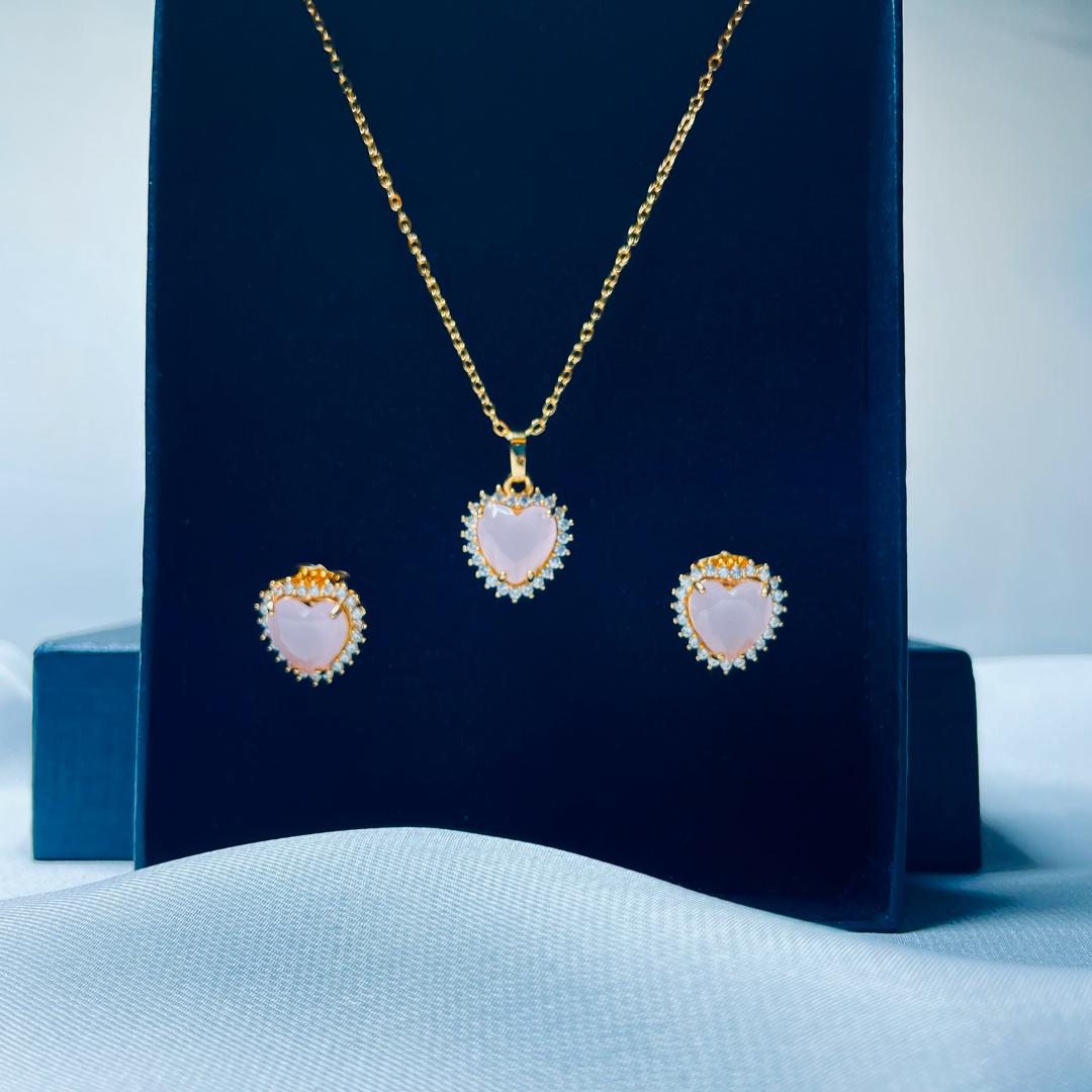 Embrace grace and femininity with this exquisite pink heart jewelry set. Crafted with delicate pink gemstones, a gold-plated finish, and a shimmering halo of crystals, this set is perfect for everyday elegance or special occasions. A symbol of love and charm, this jewelry set is a must-have for every fashion lover.