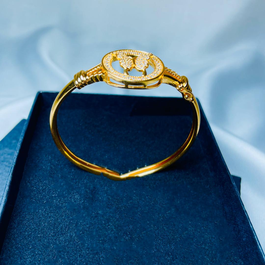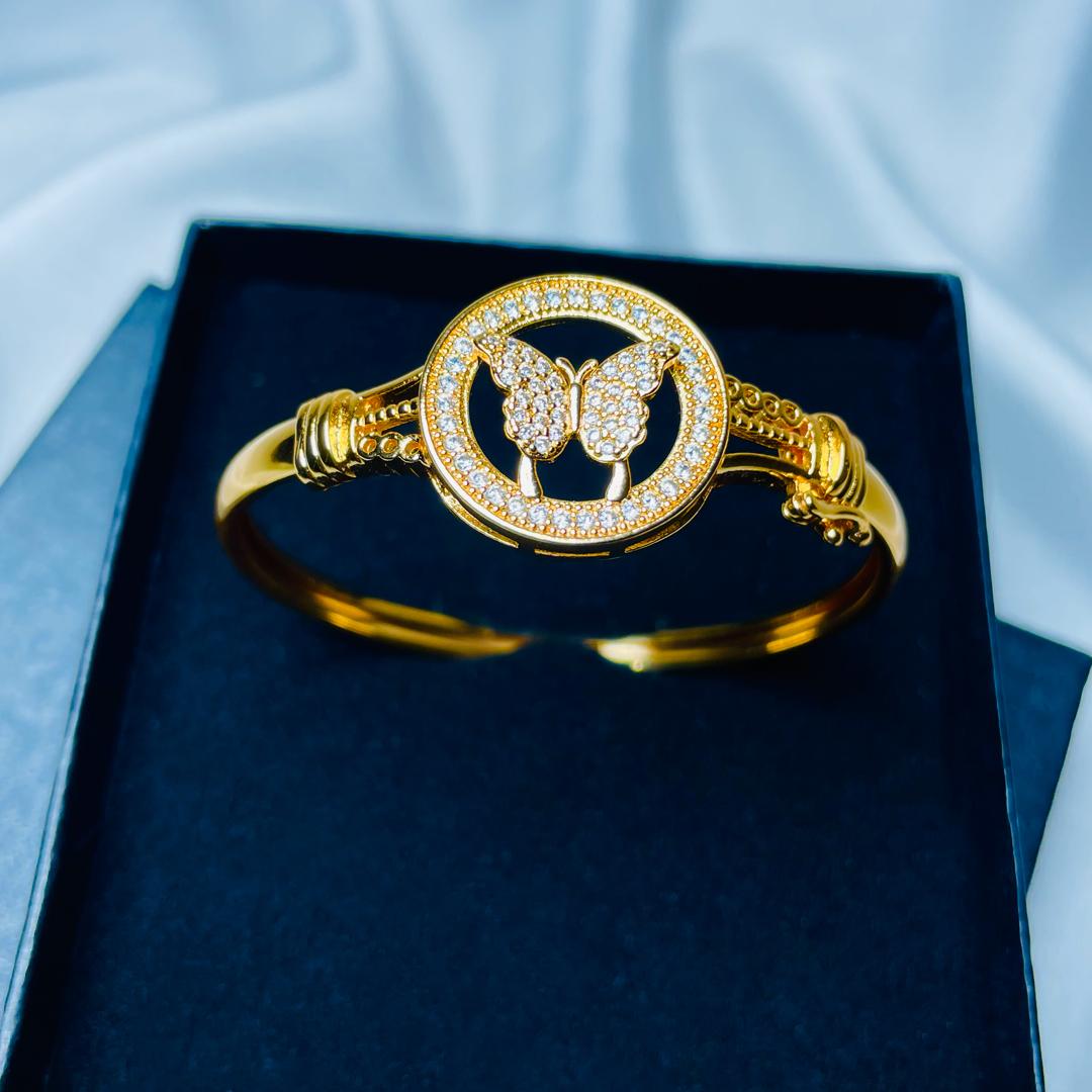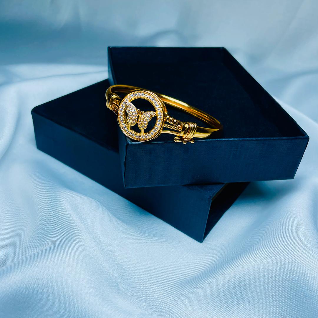 Elevate your elegance with this stunning butterfly charm bangle, crafted with premium gold plating and adorned with sparkling zirconia stones. The delicate butterfly design symbolizes transformation and grace, making it a perfect statement piece for any occasion.