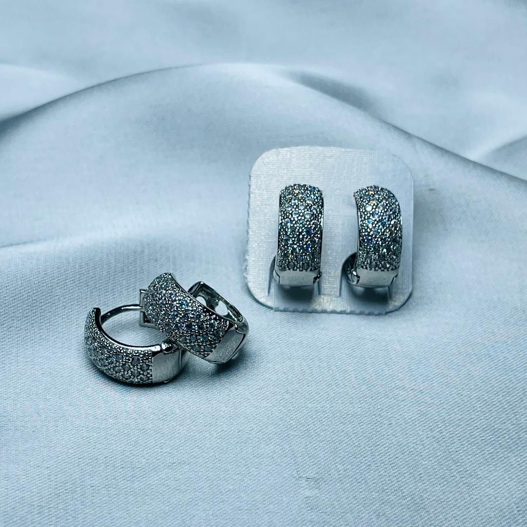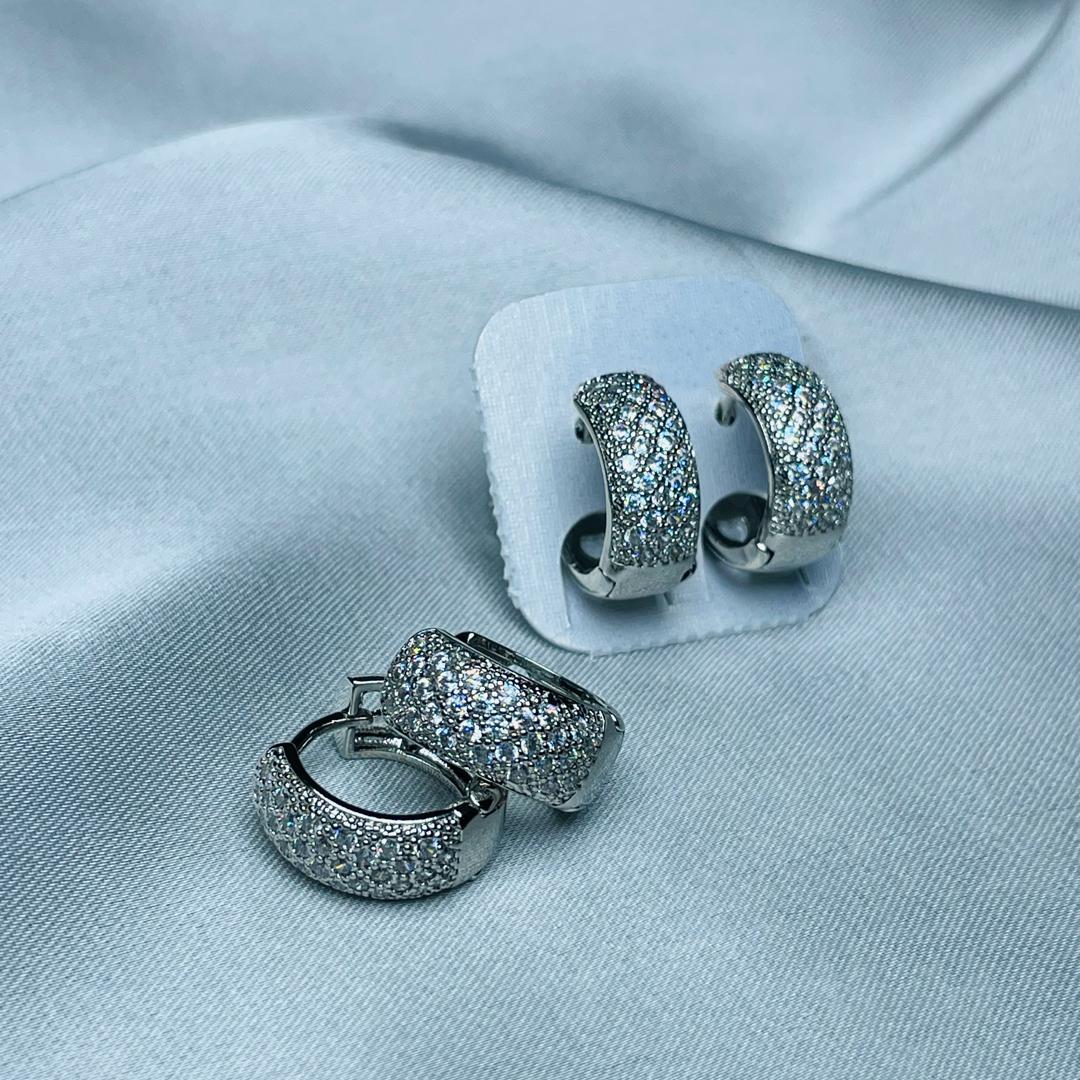 These dazzling silver hoop earrings are adorned with shimmering cubic zirconia stones, capturing light from every angle for a breathtaking sparkle. Their classic yet luxurious design makes them the perfect statement piece for any occasion.