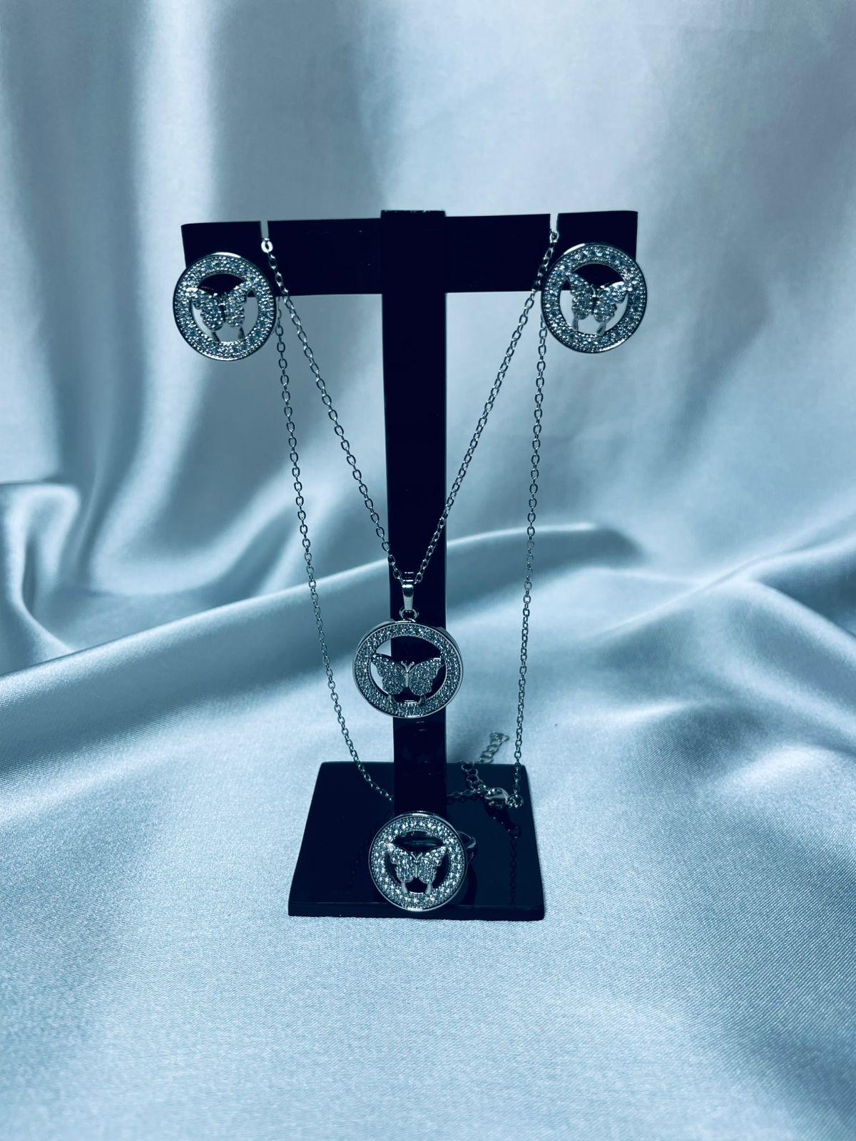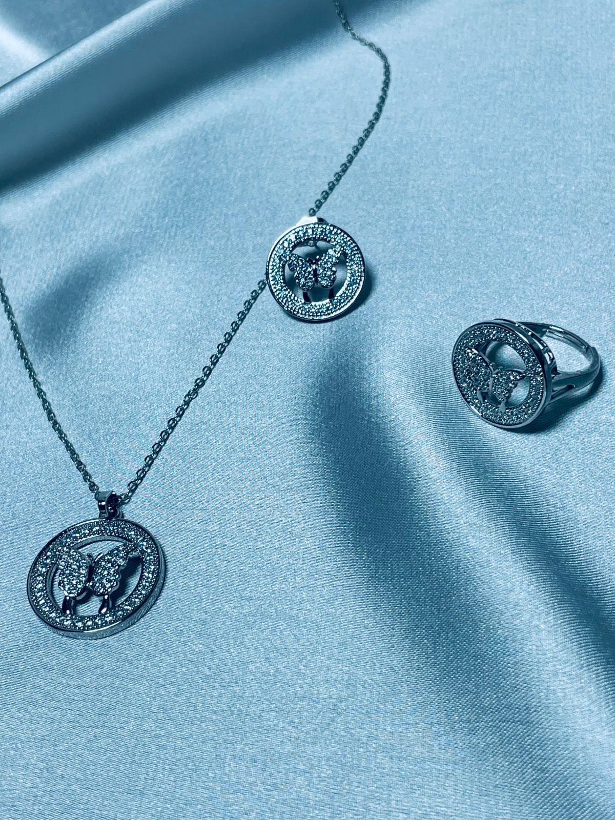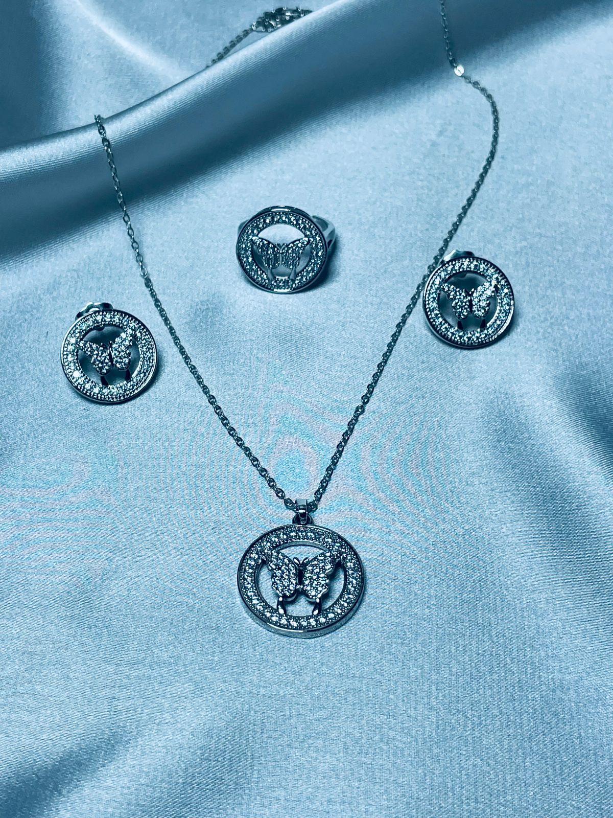 Embrace grace and beauty with our Parwana jewelry set, thoughtfully designed with butterfly-inspired details that radiate elegance and femininity. This 3-piece set includes a statement necklace, delicately crafted matching earrings, and an adjustable ring—perfect for elevating your occasion wear or gifting someone special.