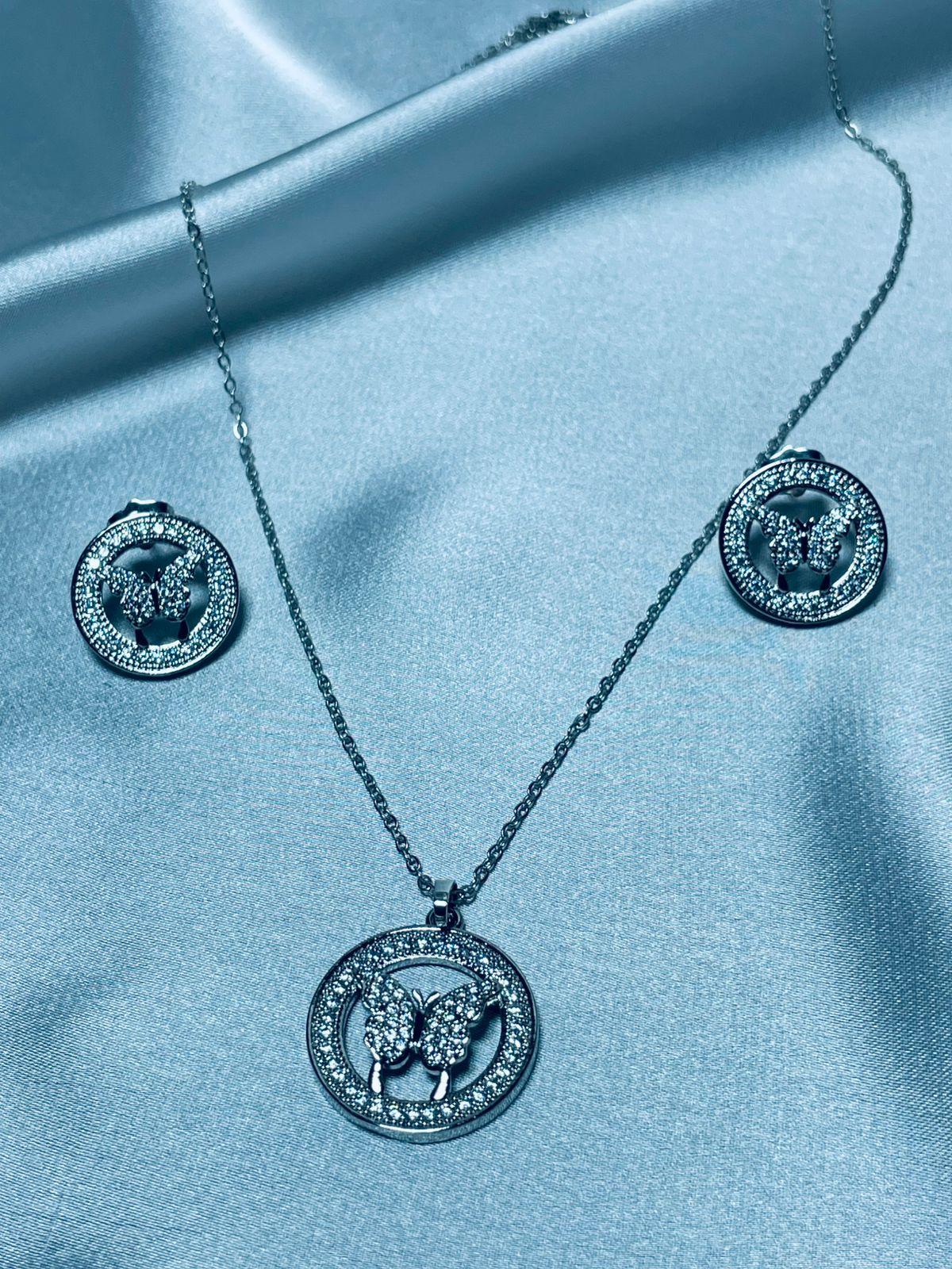 - Statement butterfly pendant with sparkling stone accents