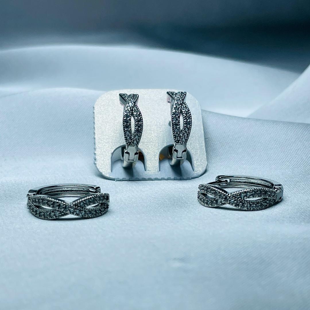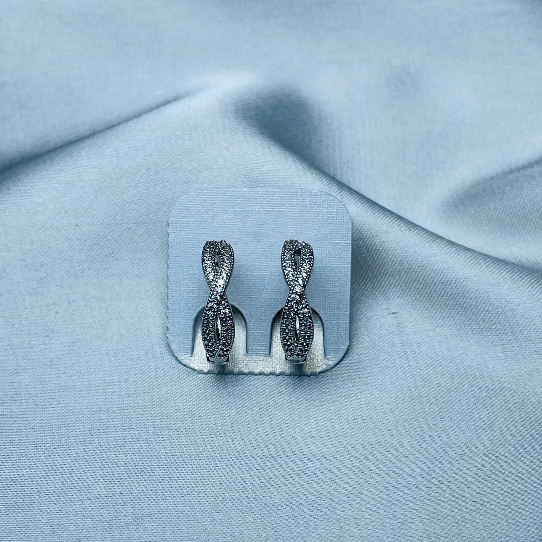 These stunning silver hoop earrings feature an intricate infinity-inspired design, symbolizing everlasting elegance and sophistication. Adorned with shimmering cubic zirconia stones, they offer a dazzling sparkle that enhances any look.